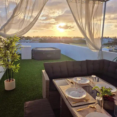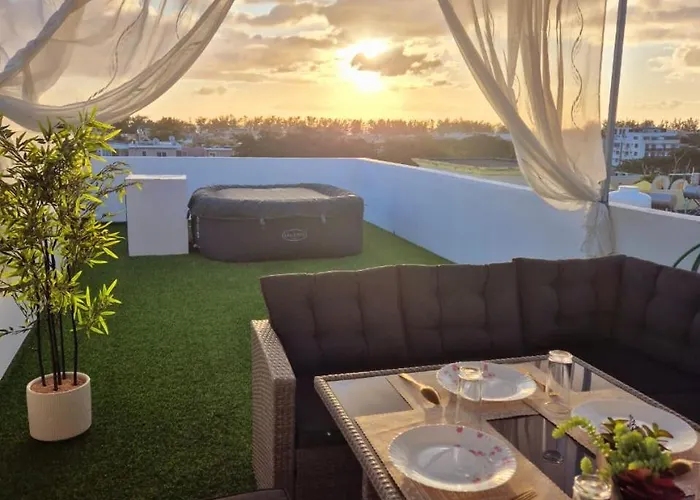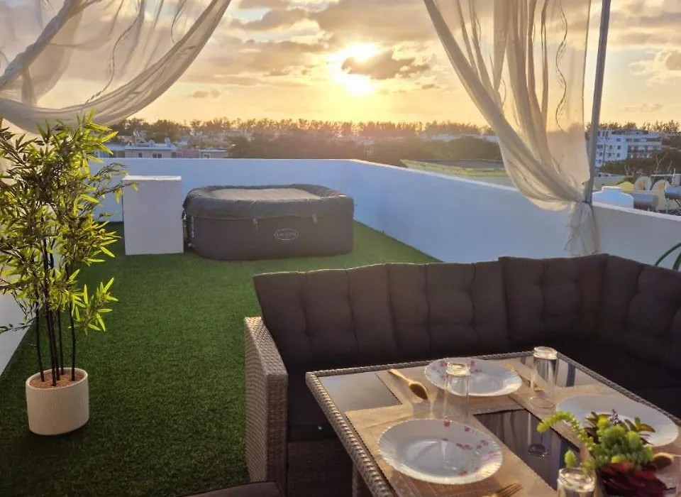 The spacious Skyview Apartment- Rooftop Penthouse With Sunset & Sea Views Flic en Flac is situated in Flic en Flac, a 10-minute drive from Tamarina Golf Course, and offers spa amenities such as a Jacuzzi. For guests seeking an active stay, this apartment grants access to a golf playground.